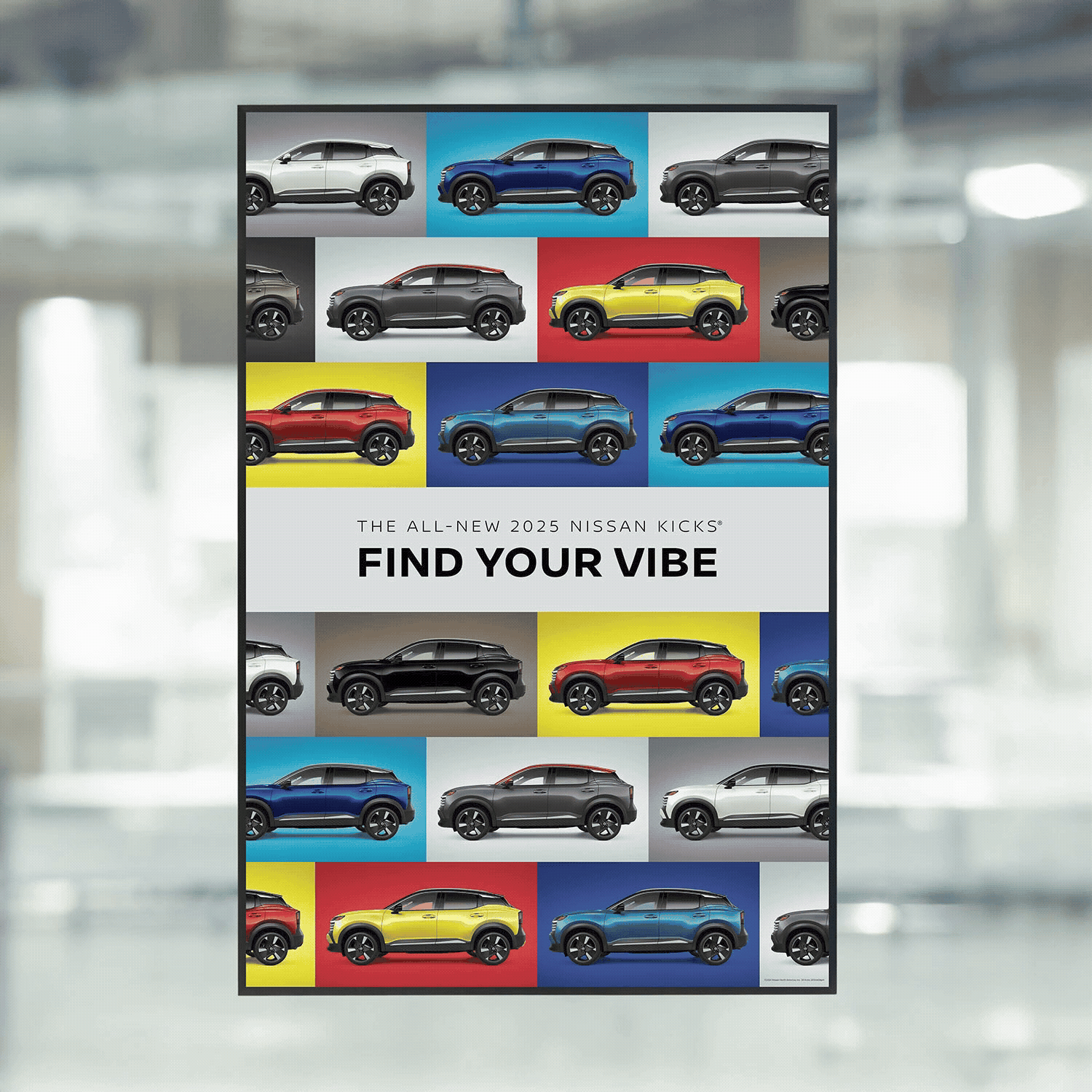 We added some personality to the dealership showroom using a lenticular poster to showcase all the unique KICKS’ exterior colors.